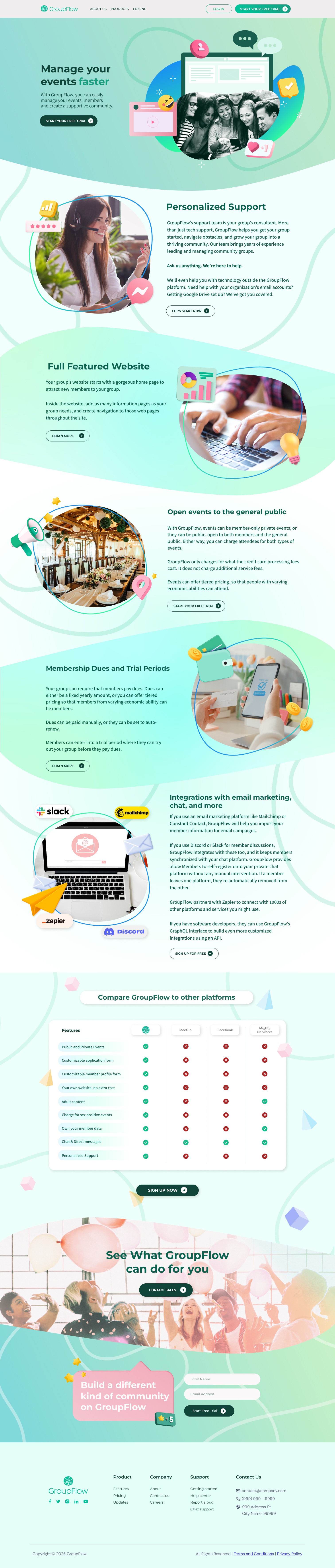 The final result is a clean, flowing, and user friendly landing experience that communicates GroupFlow’s purpose clearly while inviting users to explore the platform further.